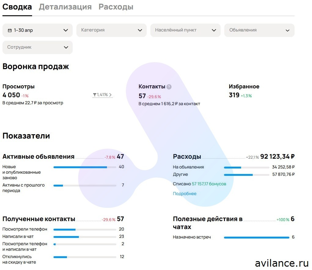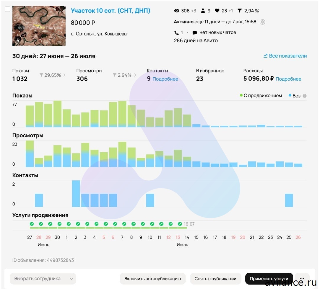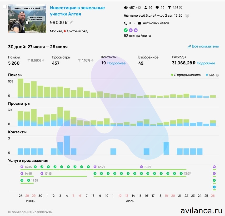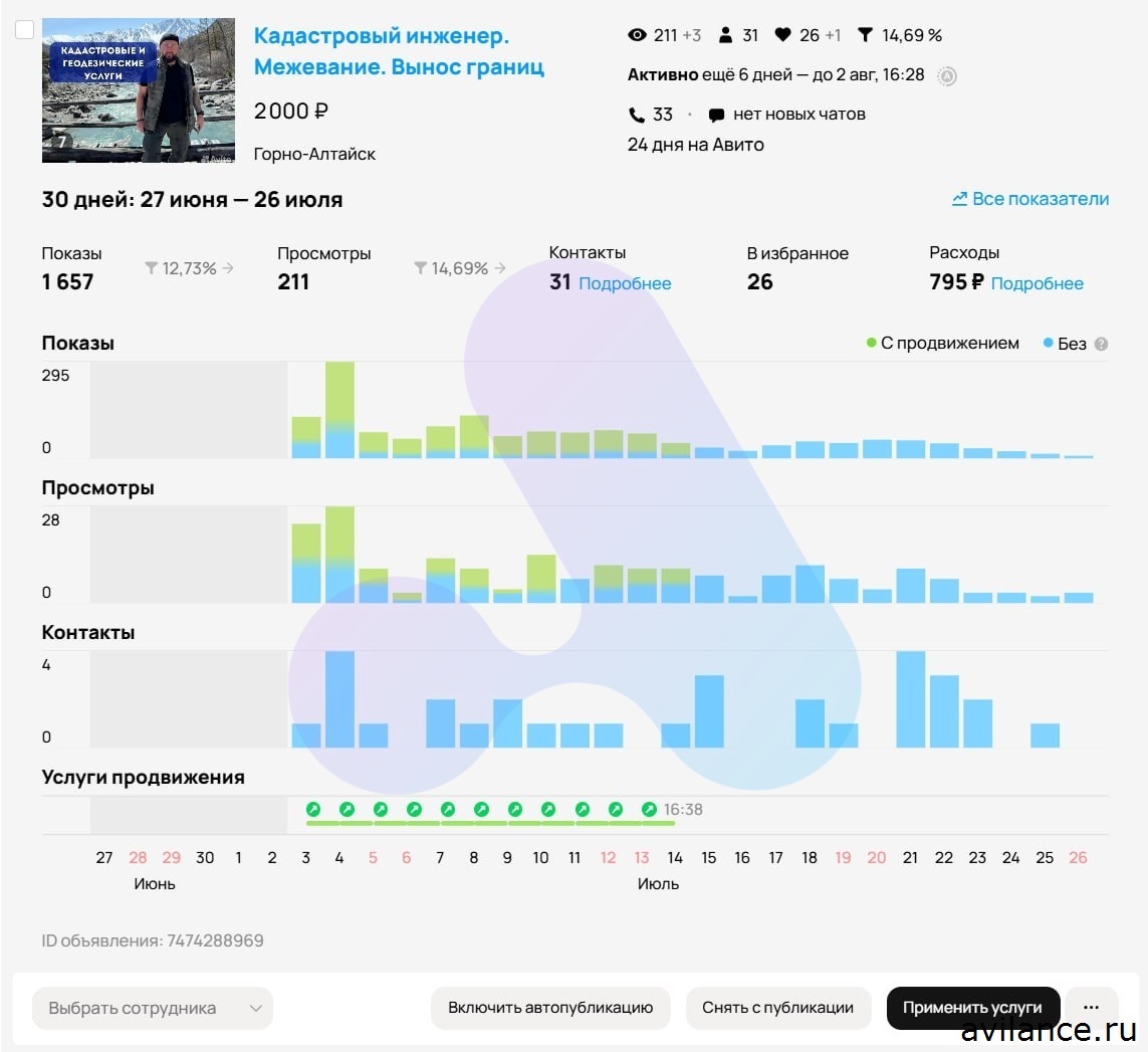 Оформление и статистика лучших объявлений:
