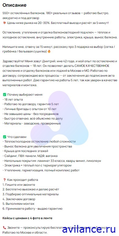 Клиент работает в нише остекления и отделки балконов.