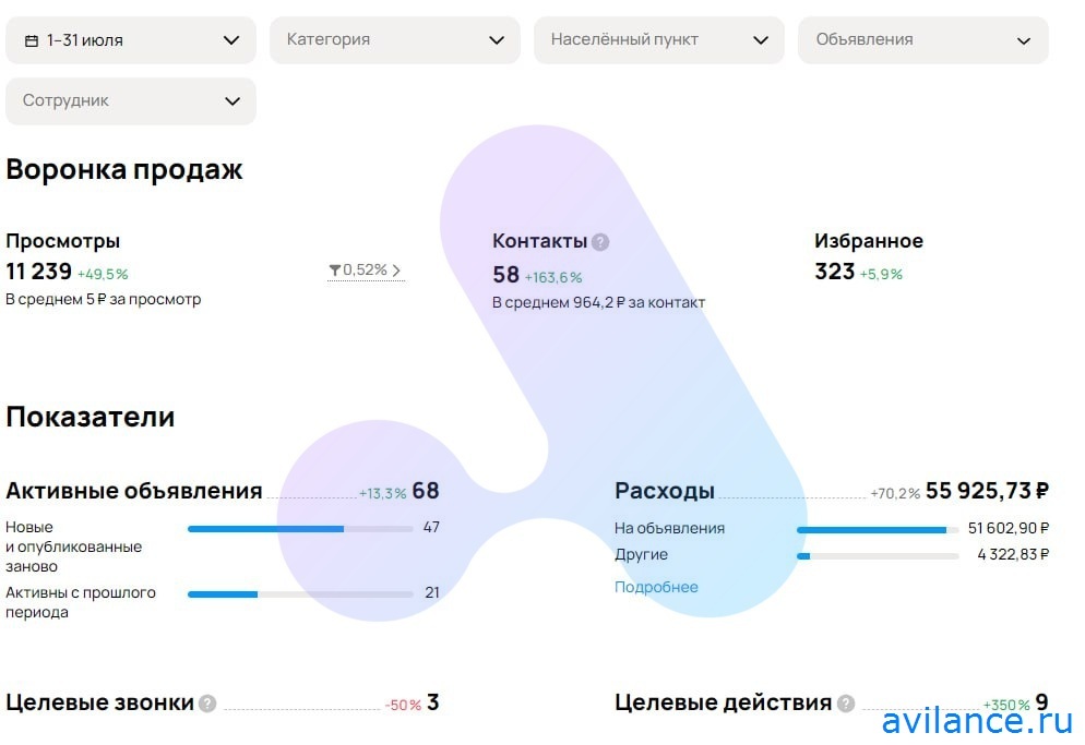Лучшие объявления и статистика по ним: